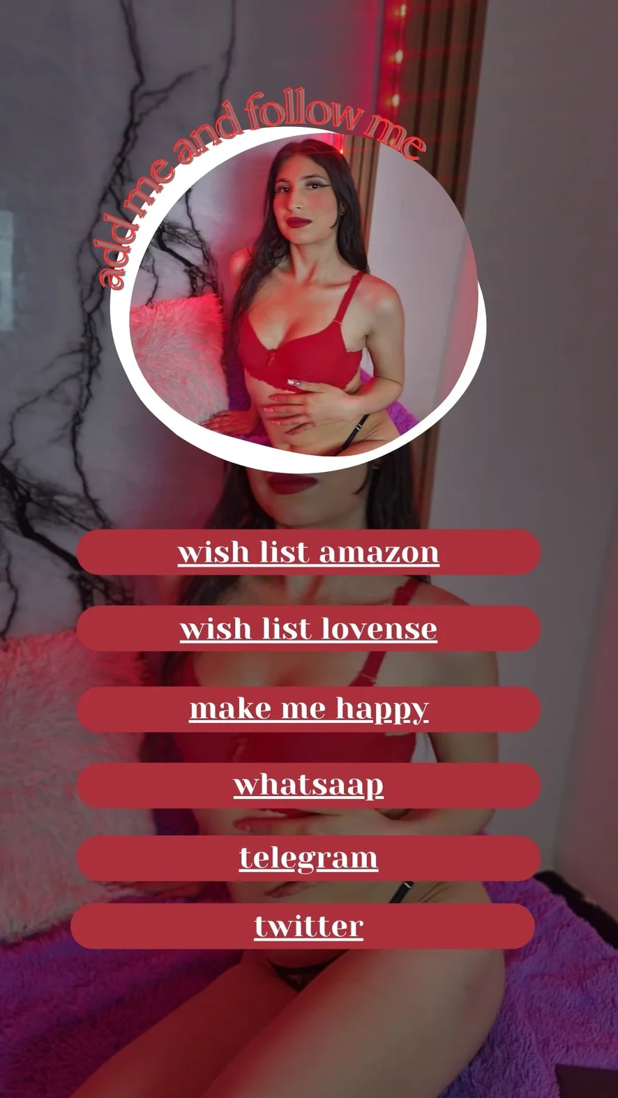 I am an intense, curious woman with a sensuality that I do not know—nor do I want—to hide. I love playing with tension, provoking with my eyes and letting the imagination do the rest. Whoever walks into my living room knows they are about to meet someone who enjoys shameless, dirty, unlimited flirting, fiery energy, and conversations that raise the temperature without needing to say everything. I like to explore, surprise and create an intimate environment where chemistry flows on its own. I am creative, daring and very receptive to desires and fantasies... always with elegance, mischief and a lot of attitude. If you are looking for a magnetic, playful presence with a touch of delicious danger... I warn you: I don't just shine, I burn. 🔥✨ zero limits